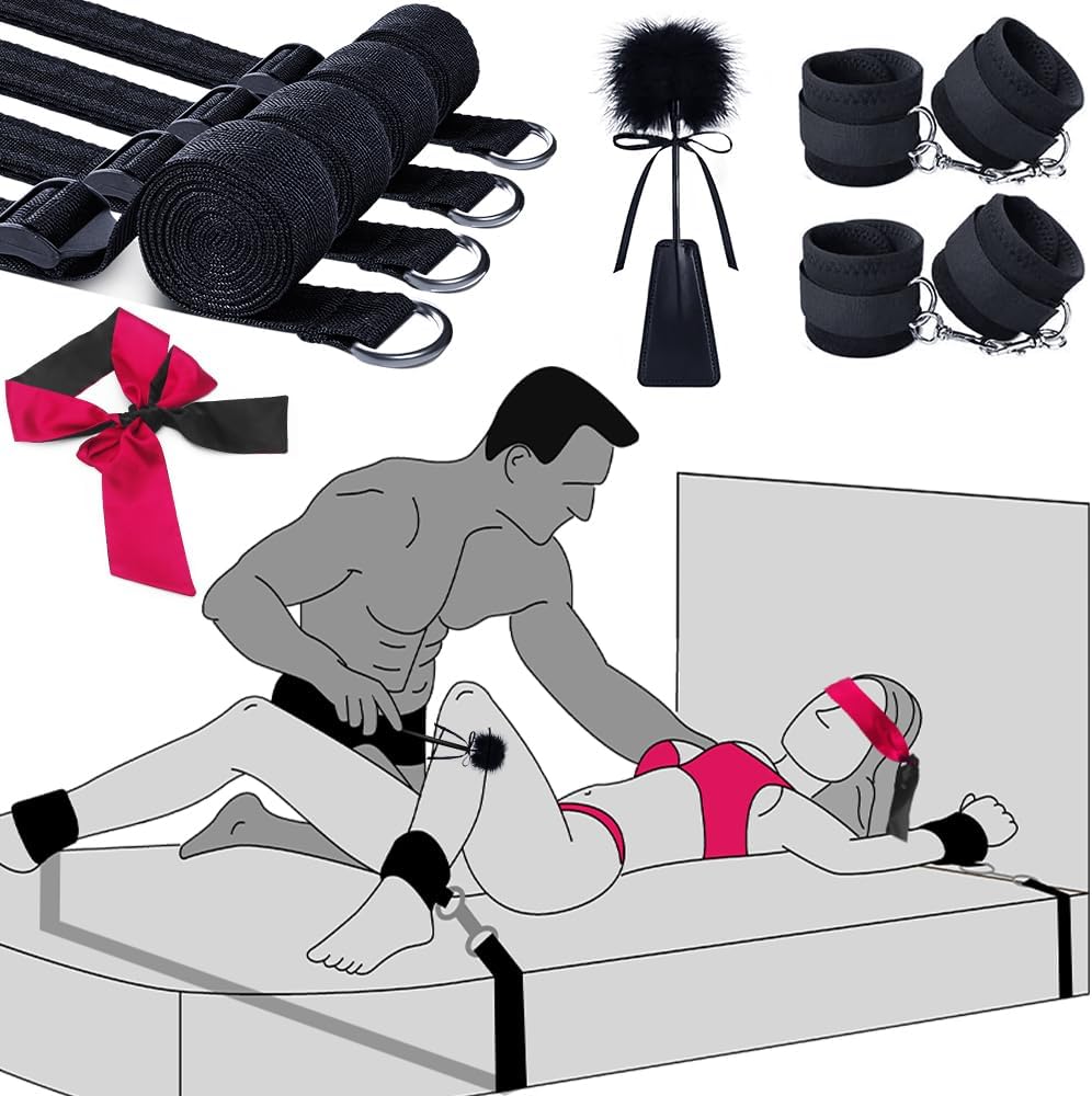 Sex Toys Bondage BDSM Restraints, Couples Sex Toys Bondage Restraints BDSM Kit, 75” Adjustable Bed Restraints Sex Straps Set with Handcuffs Blindfold Tickler, Couple Adult Toys